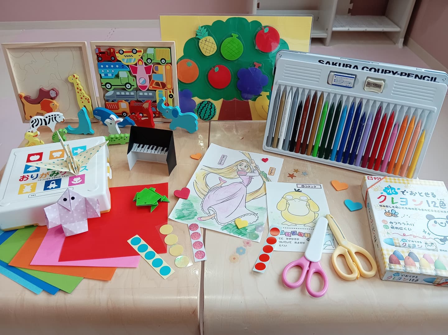 パズル、おりがみ、ぬりえ、シール貼り☆