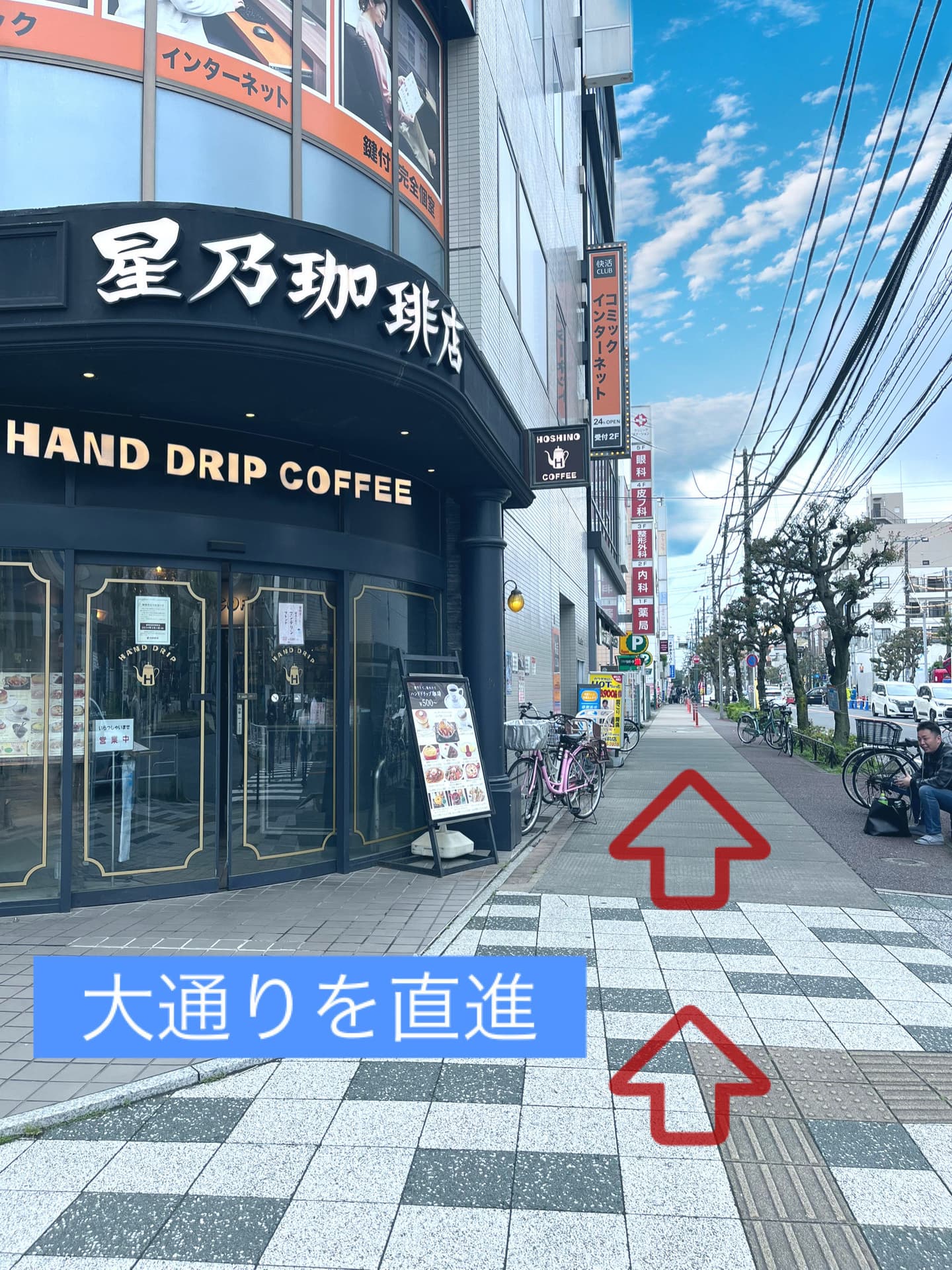 3. 星乃珈琲店を左手にし、大通りを直進。