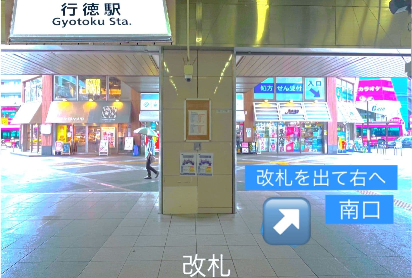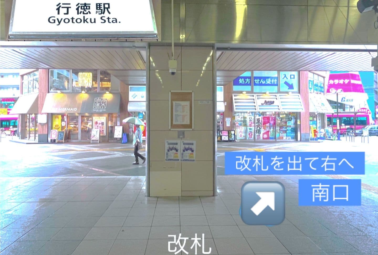 1. 行徳駅の改札を出て右側(南口)に進みます。
