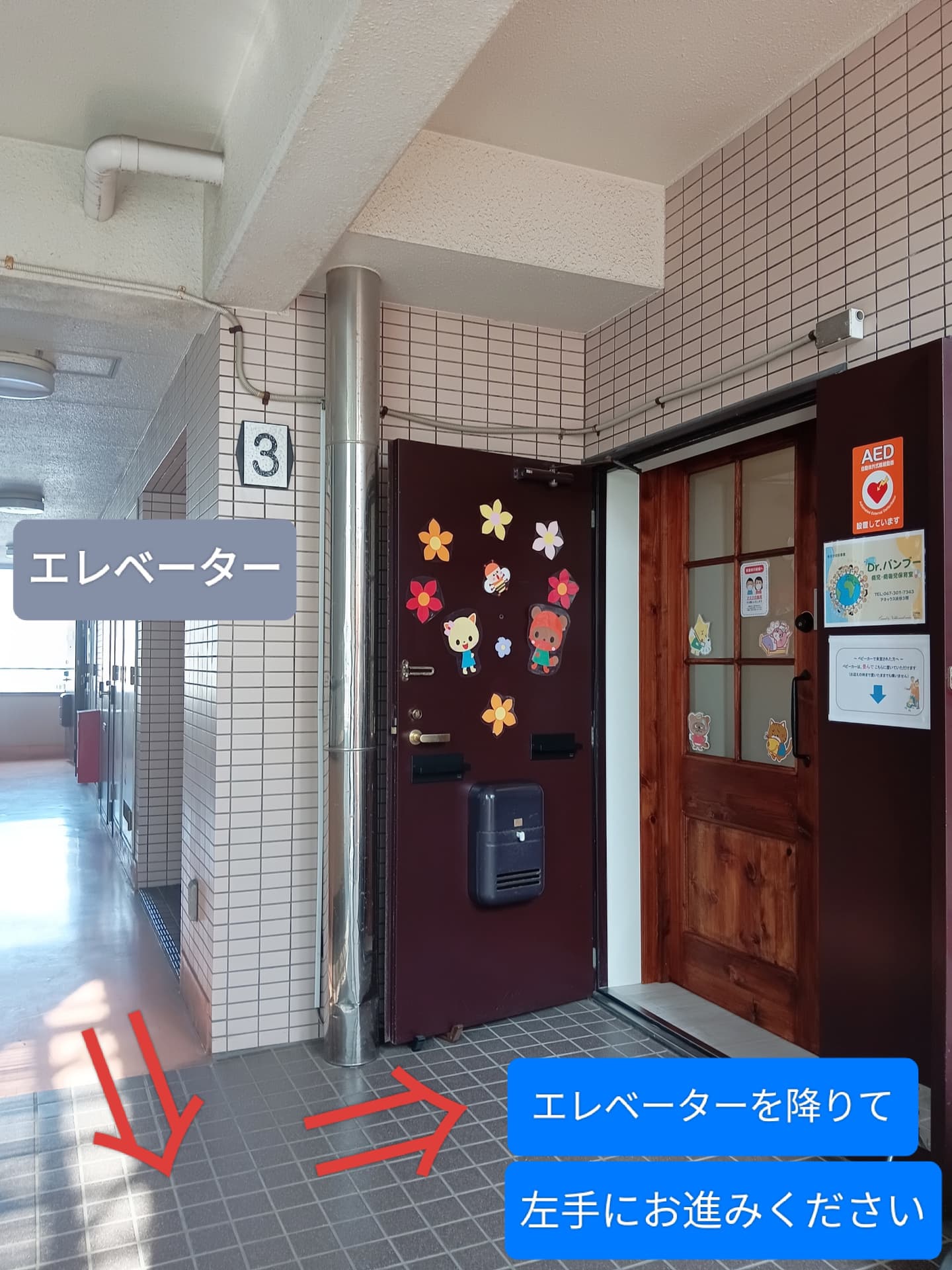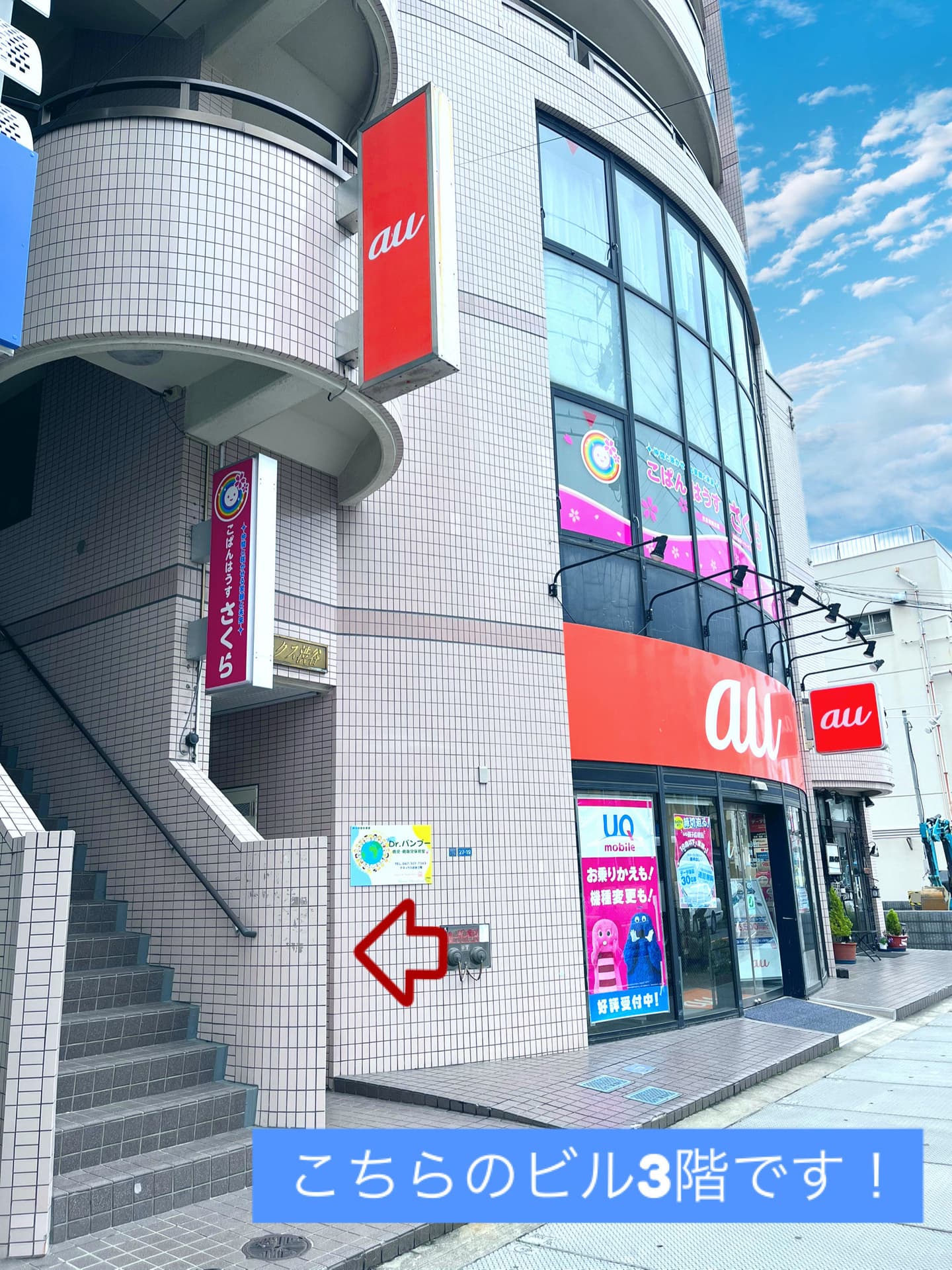 5. さらに20m程進み、こちらのビル3階です♪1階はauショップ。階段奥の入口を進むとエレベーターがございます。